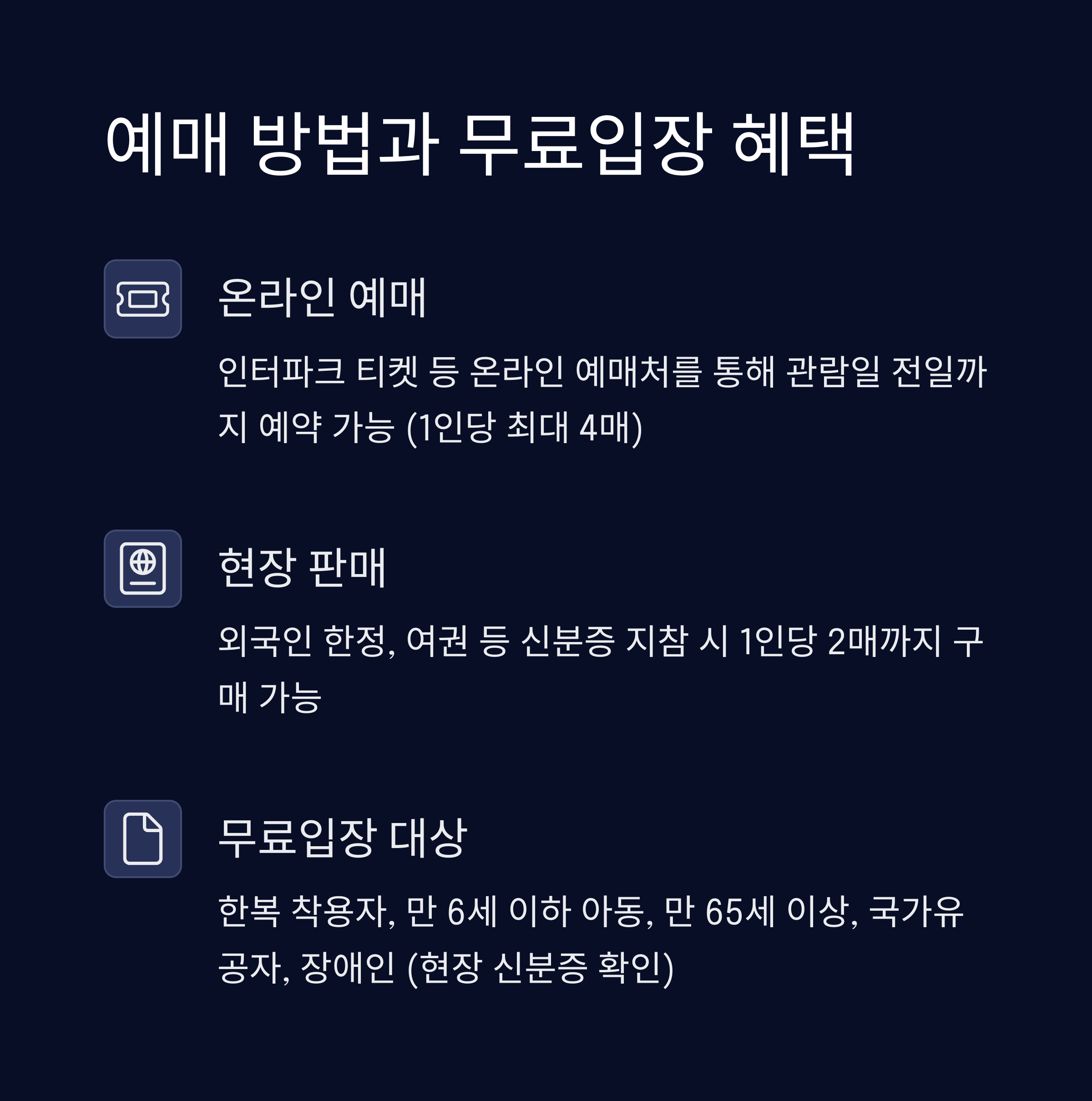 이들은 별도 예매 없이 현장 신분증 확인으로 입장할 수 있으니 참고하세요.