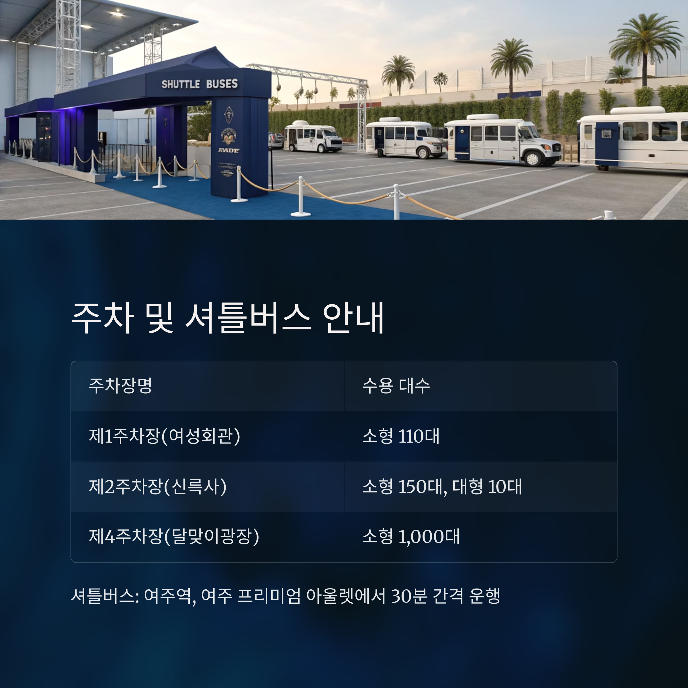 표로 보는 주차장 및 셔틀버스 정보