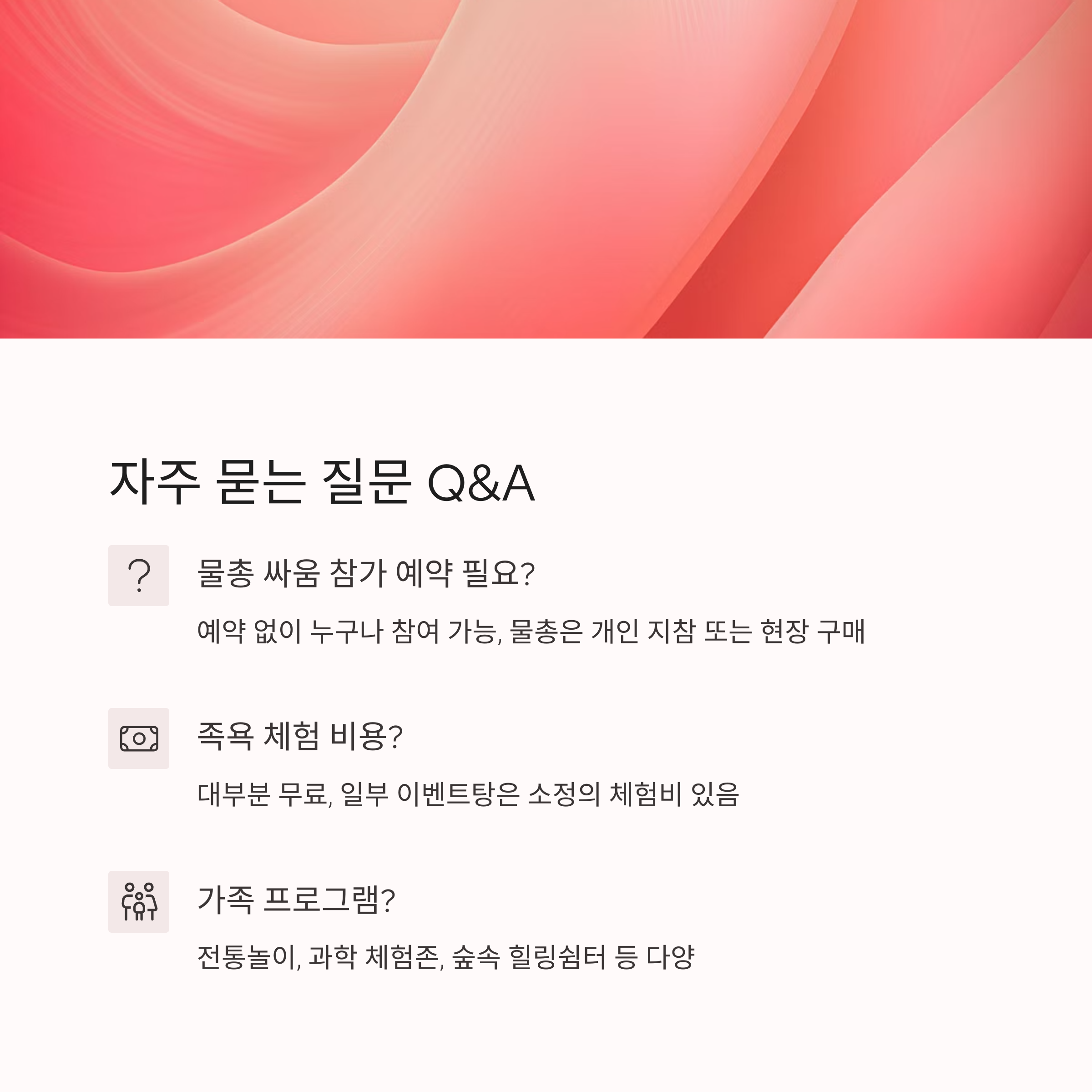 → 어린이들을 위한 전통놀이 체험장, 과학 체험존, 숲속 힐링쉼터 등 가족 체험 프로그램이 다양합니다.