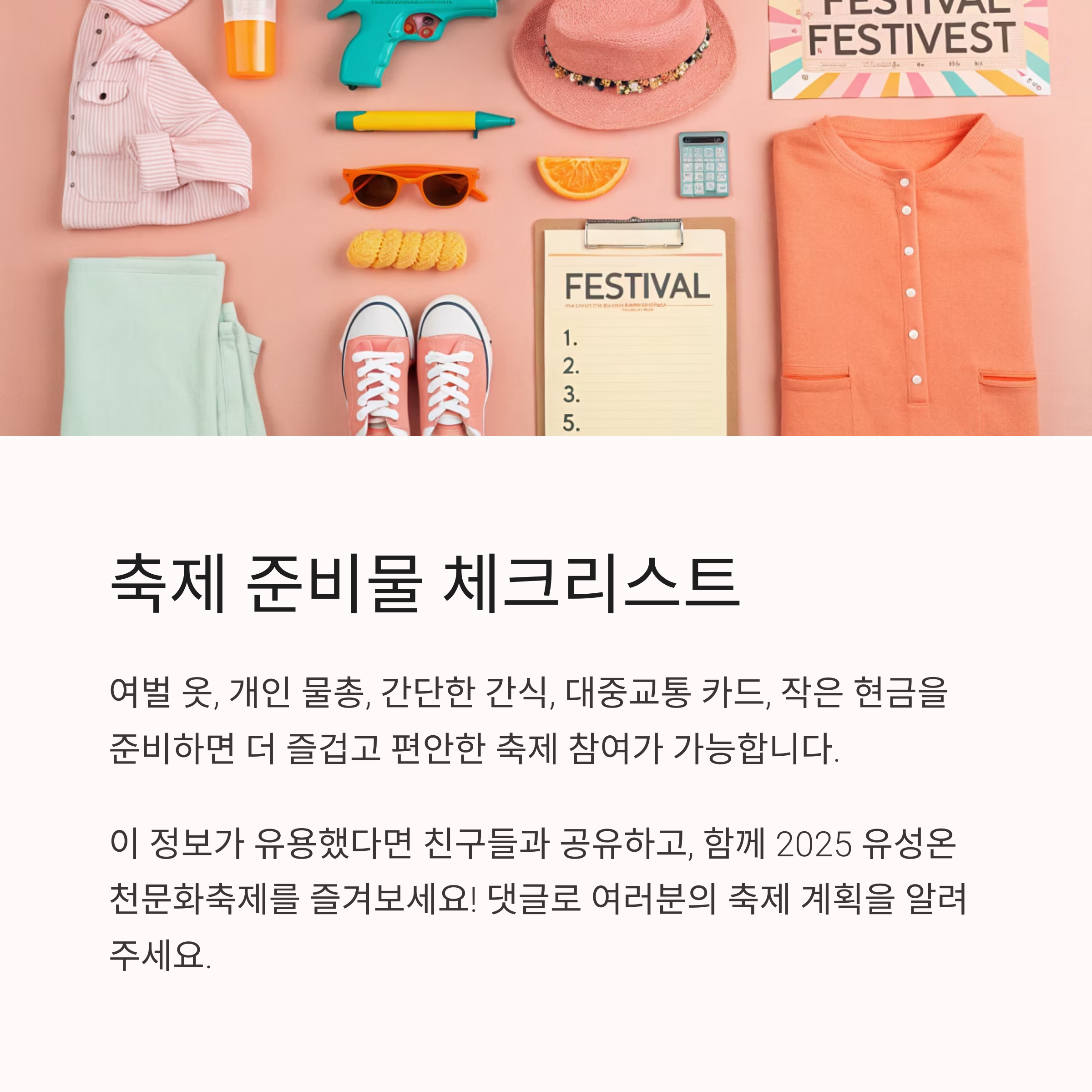 핵심: 미리 준비하면 더 즐겁고 편안한 축제 참여가 가능합니다.