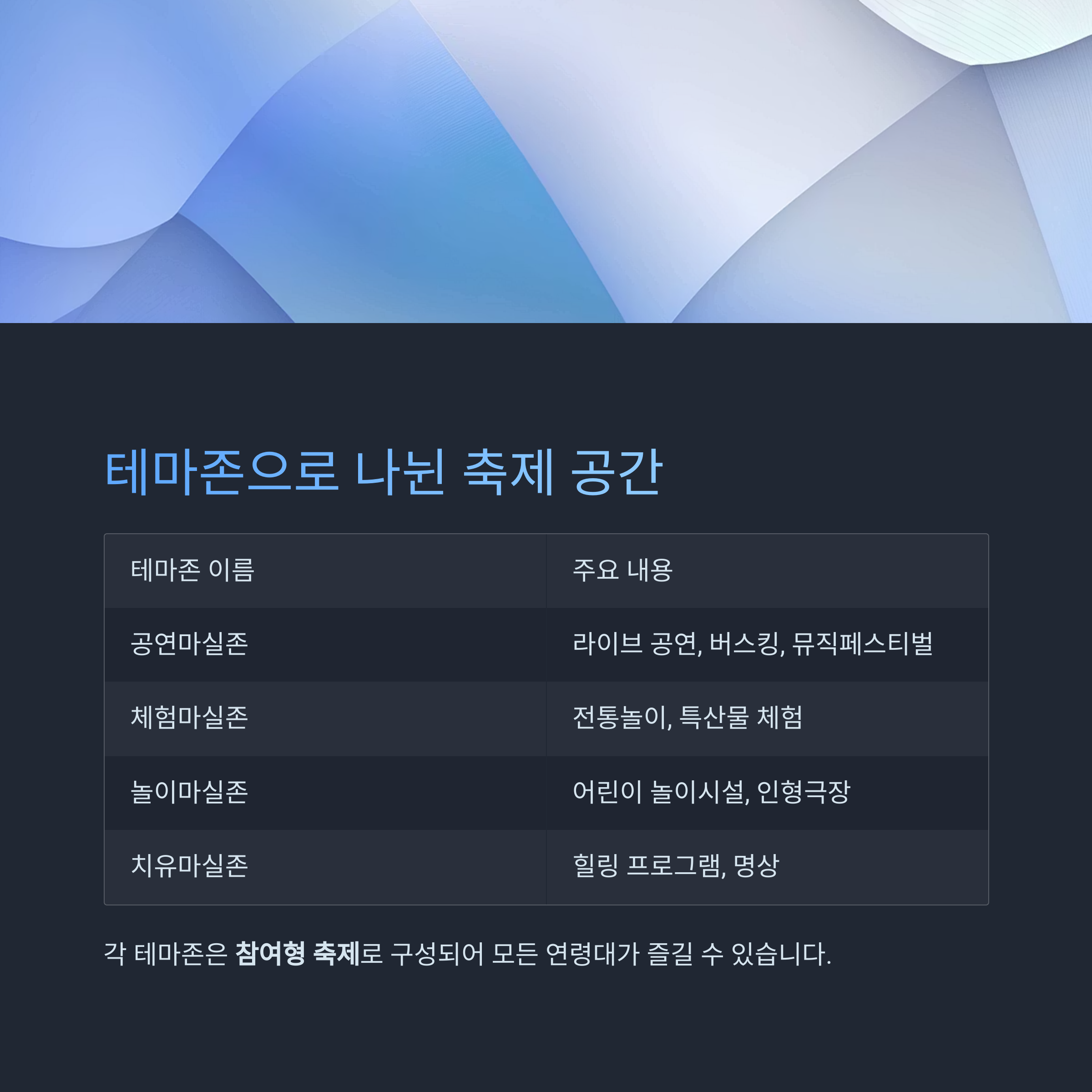 | 테마존 이름 | 주요 내용 |
