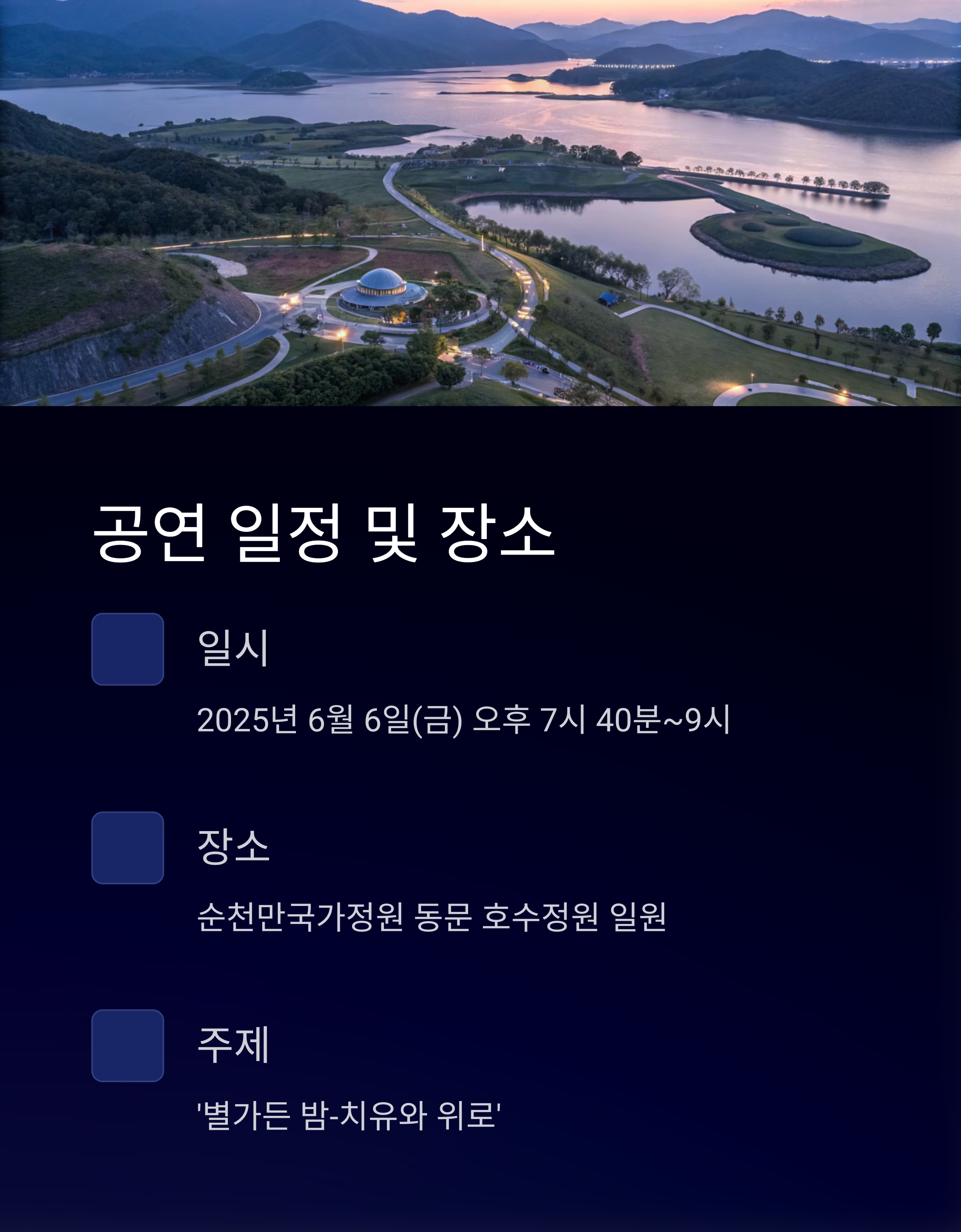 공연 일시 2025년 6월 6일(금) 오후 7시 40분 ~ 9시