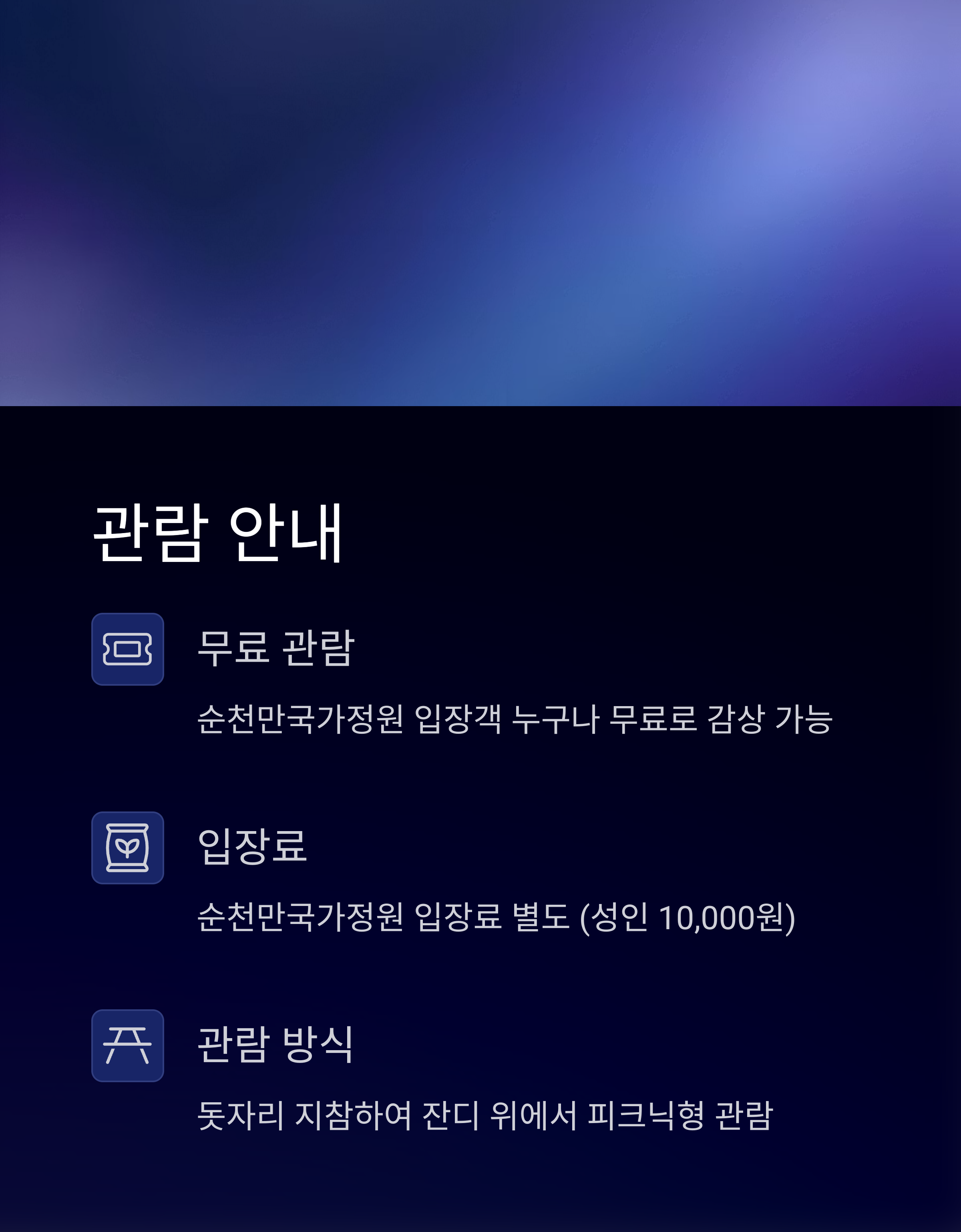입장료 순천만국가정원 입장권(성인 10,000원) 소지 시 무료 관람