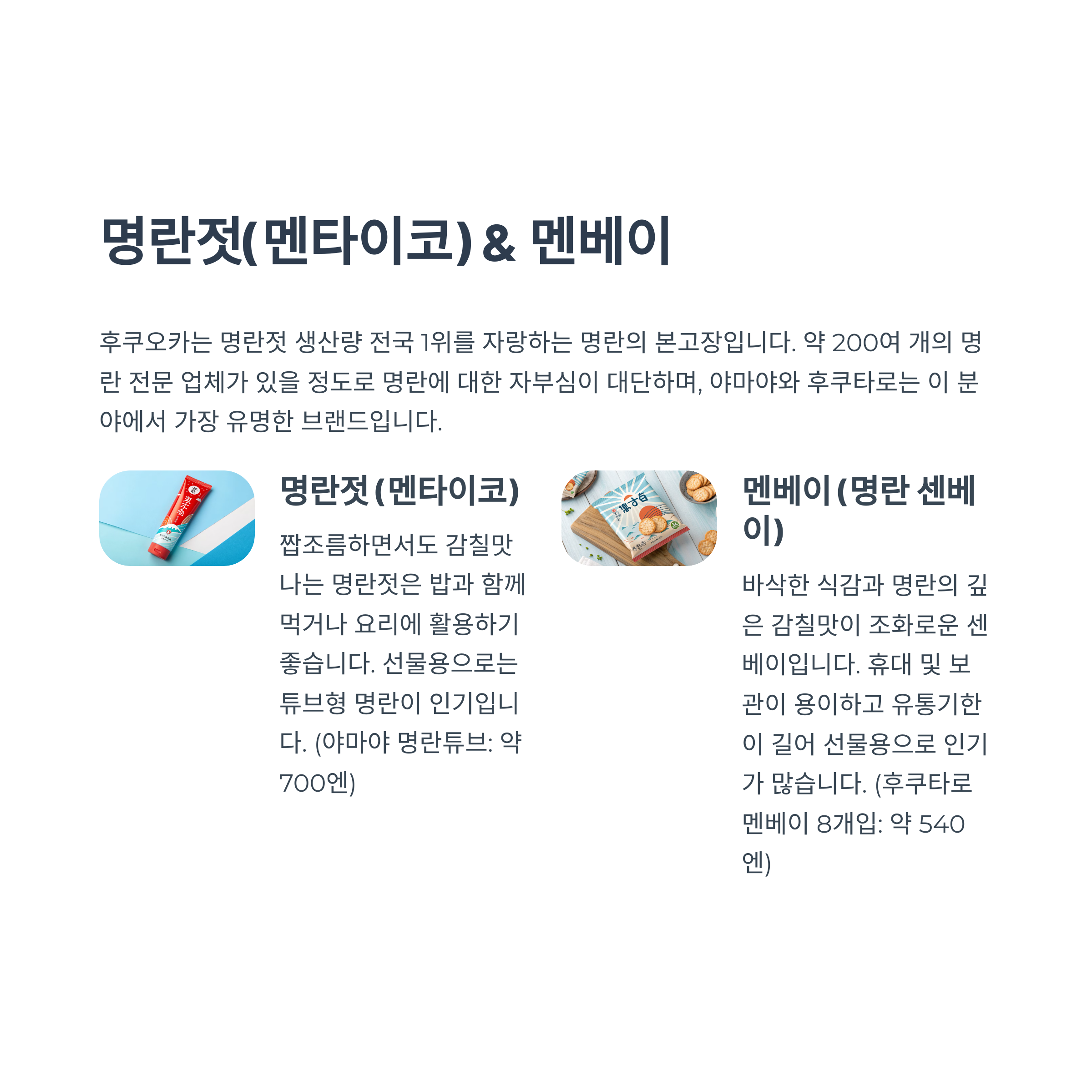 2. 후쿠오카의 맛과 자부심, 명란젓 (멘타이코) & 멘베이