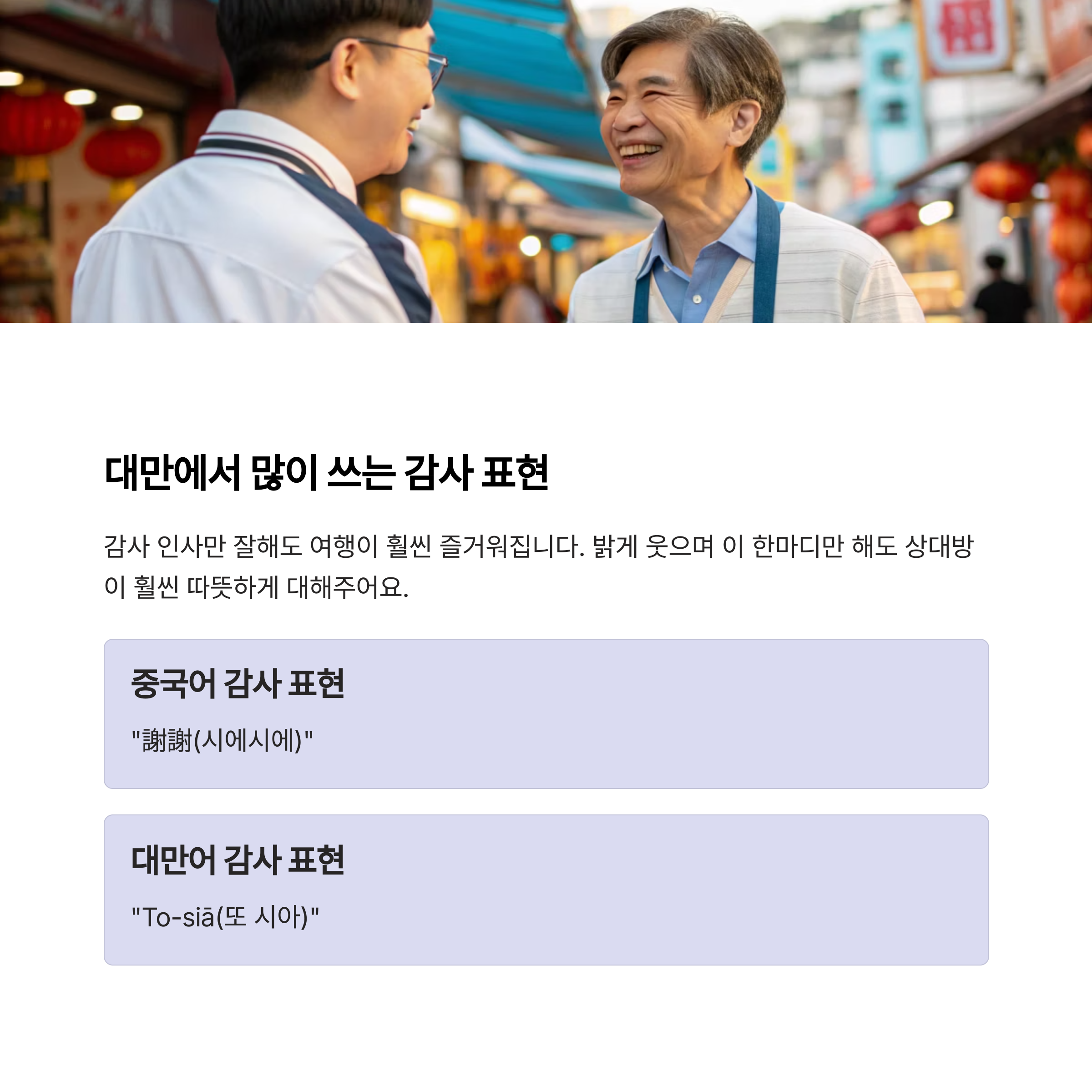 간단한 대만어 인사 정도를 함께 알아두시면