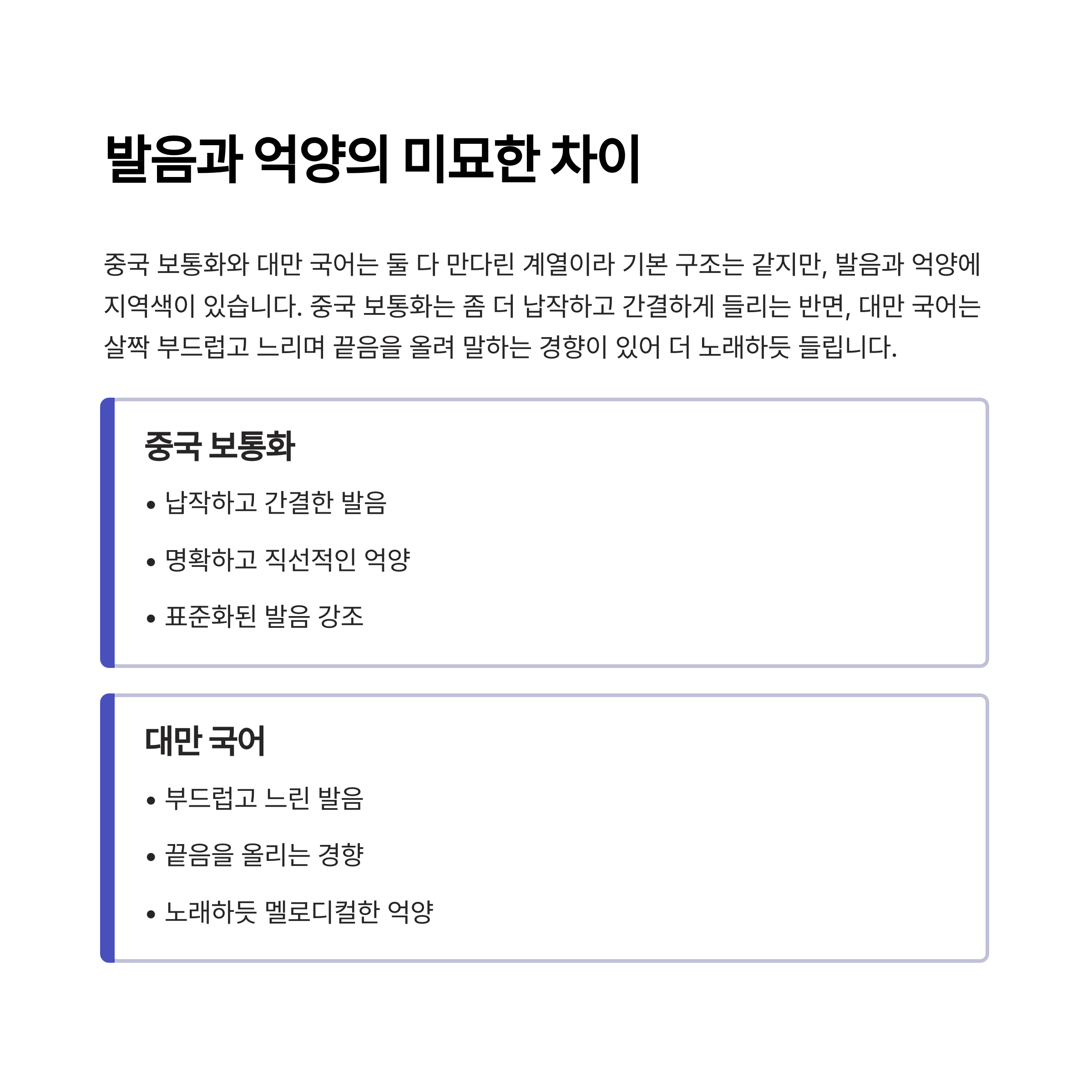 대만 국어는 살짝 부드럽고 느리며 끝음을