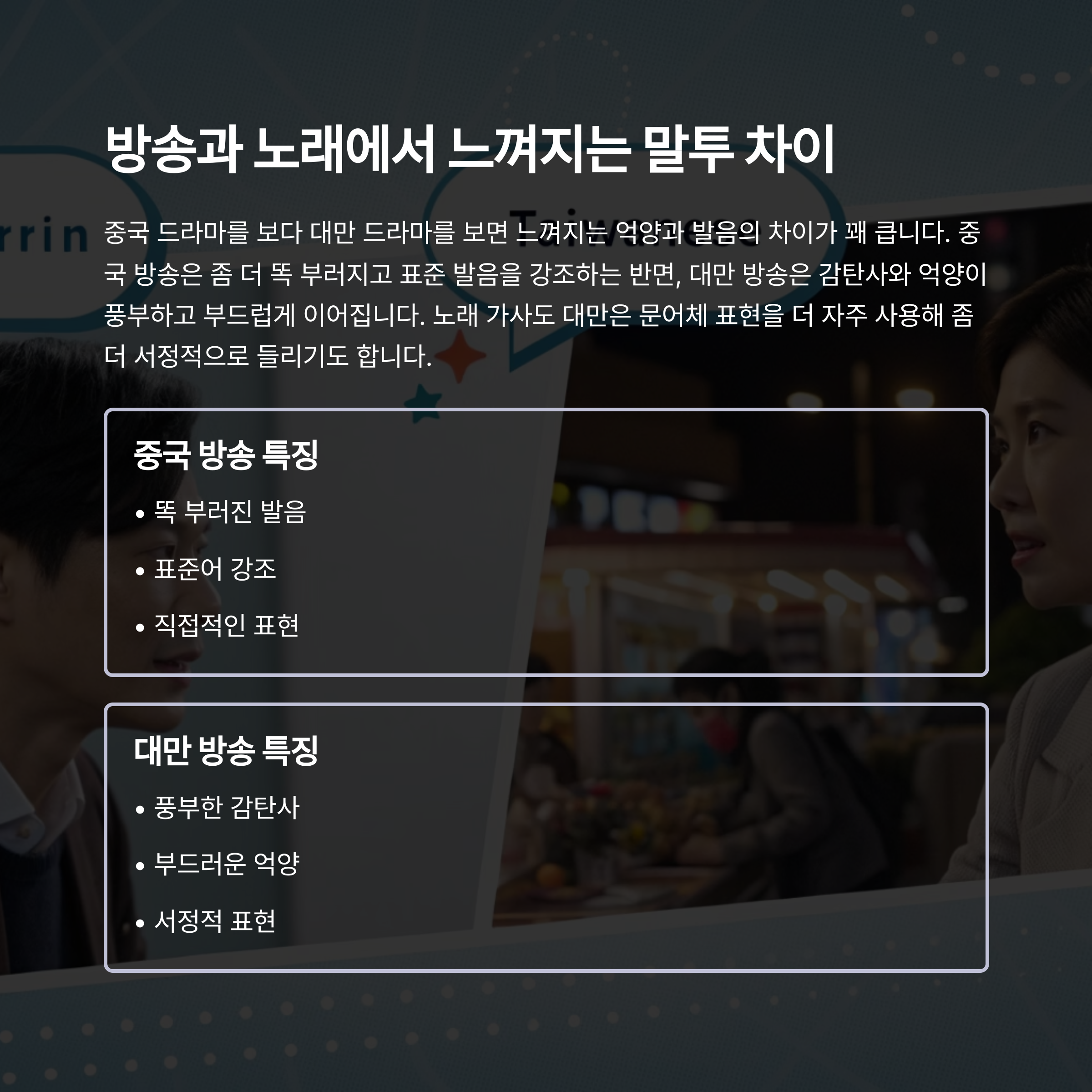 대만과 중국의 방송, 노래에서 듣는 말투 차이