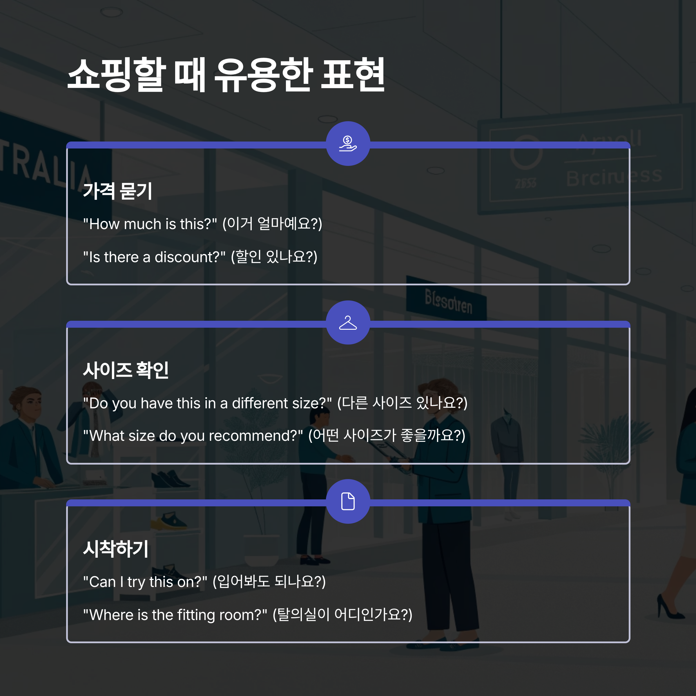 2025.07.10 - [여행/여행 외국어] - 호주 여행 필수 영어 1, 꼭 알아야 할 필수 영어 표현 총정리