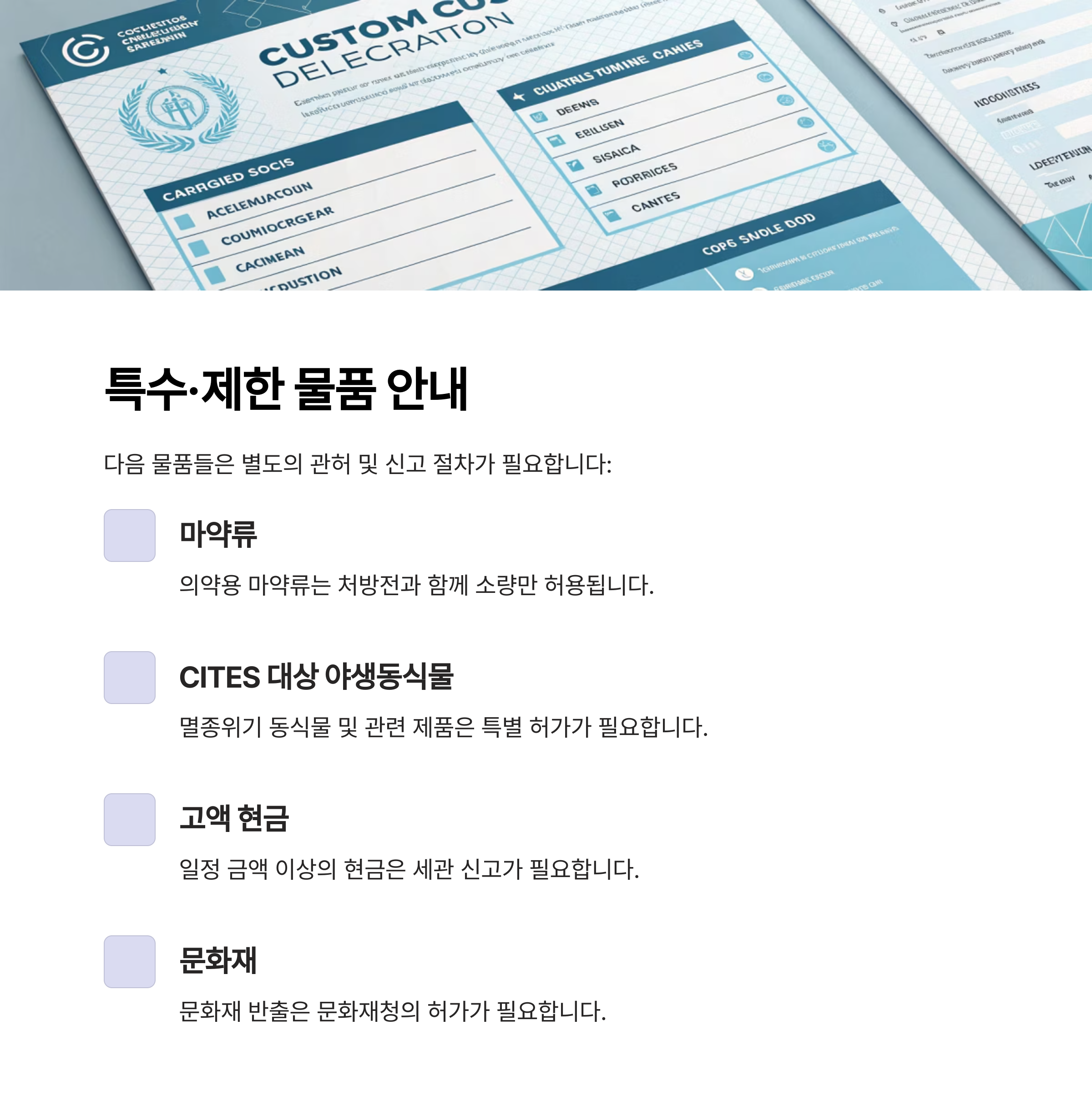 혹시라도 몰랐던 규정 때문에 공항에서 물품을 버리거나 당황하는 일이 없도록,