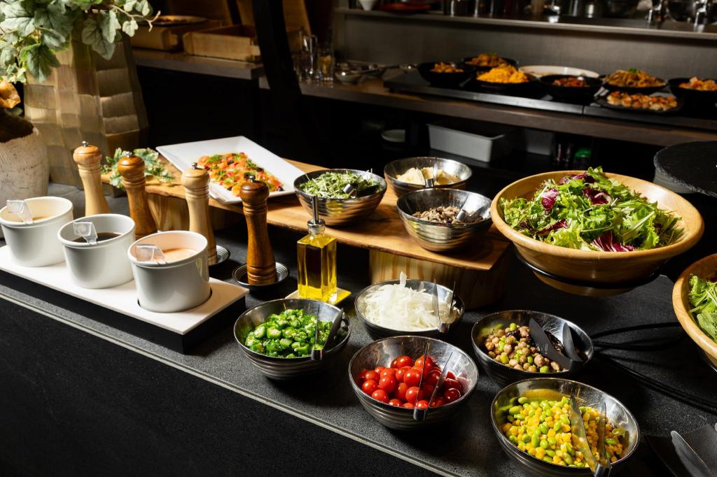더 로얄 파크 호텔 후쿠오카의 조식은 후쿠오카 지역의 특색을 살린 다채로운 메뉴를 제공합니다. 신선한 현지 재료를 사용한 일본식 요리와 함께 빵, 샐러드 등 양식 메뉴도 함께 즐길 수 있어 투숙객들의 만족도가 높습니다. 깔끔하고 정갈한 분위기에서 든든하게 아침 식사를 즐기며 하루를 활기차게 시작할 수 있습니다. 조식을 신청하지 않았더라도 주변에 맛있는 카페나 편의점이 많아 간단한 아침 식사를 해결하기에도 좋습니다.